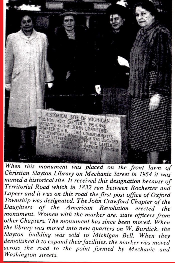was placed in 1954 on the lawn of the old library on Mechanic Street in Oxford.